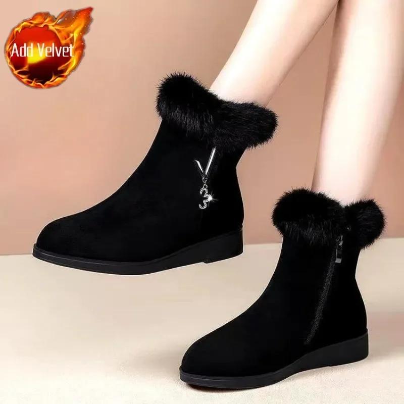 Модные черные туфли для женщин на танкетке, ботильоны с круглым носком, женские зимние сапоги, шикарные и элегантные женские сапоги из ягненка, весна-осень 2024 г.