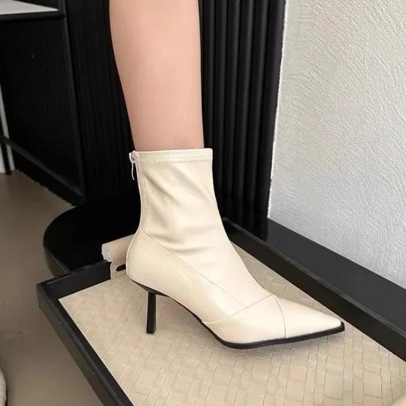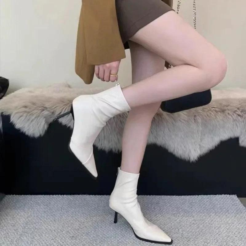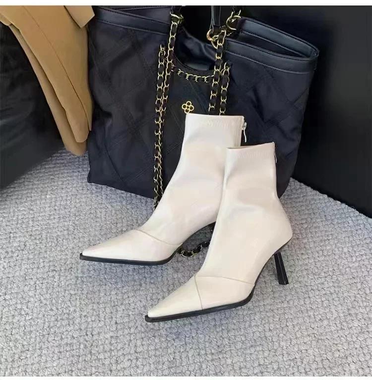Модные женские новые осенние сапоги 2024 года с острым носком на тонком каблуке из высококачественного резинового материала, модные короткие сапоги до середины икры