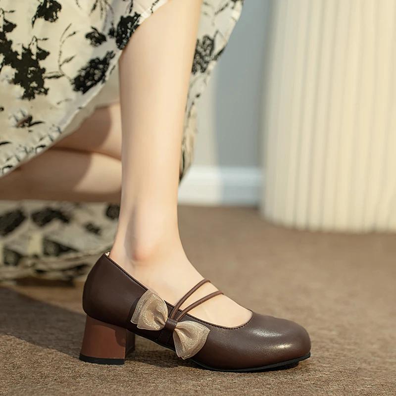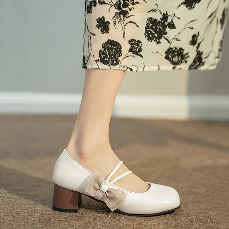 Мода 2024 года, весна и лето, ретро-стиль, галстук-бабочка, женские туфли Мэри Джейн, круглый носок, толстый каблук, темперамент, универсальный, неглубокий носок