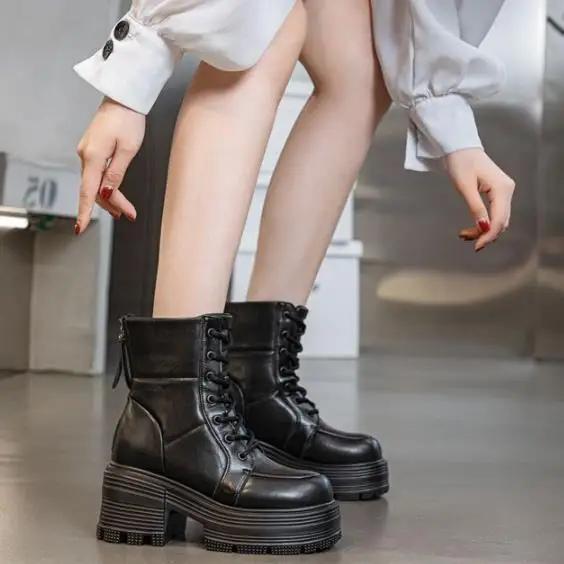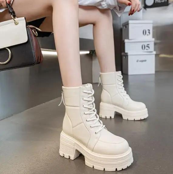 Модные 9 см новые женские ботильоны из микрофибры, высокие брендовые повседневные ботильоны на платформе, туфли на танкетке, каблуки, модная обувь на молнии