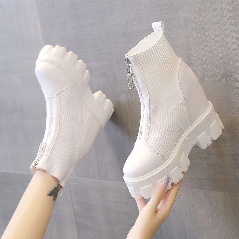 Мода 2024 года, новые зимние ботильоны, женские качественные ботинки на платформе, женские модные короткие ботинки, черные, на высоком каблуке 11 см, на молнии, женские носки