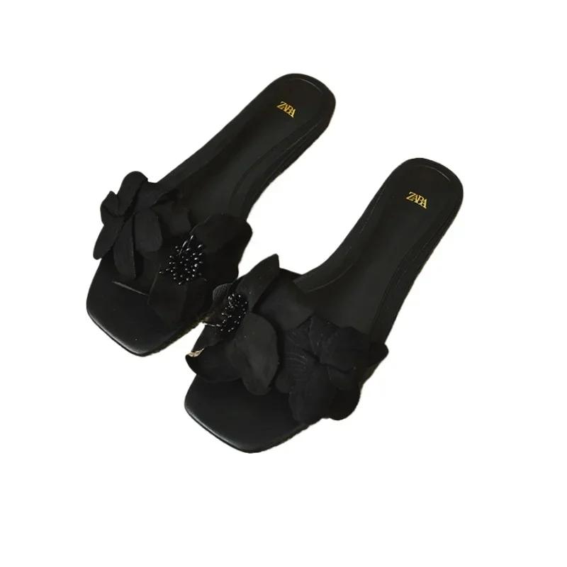 Модная обувь для женщин 2024 Высокое качество Большие размеры Женские тапочки Модные цветочные Современные тапочки Новые тапочки с квадратным носком на плоской подошве Zapatos