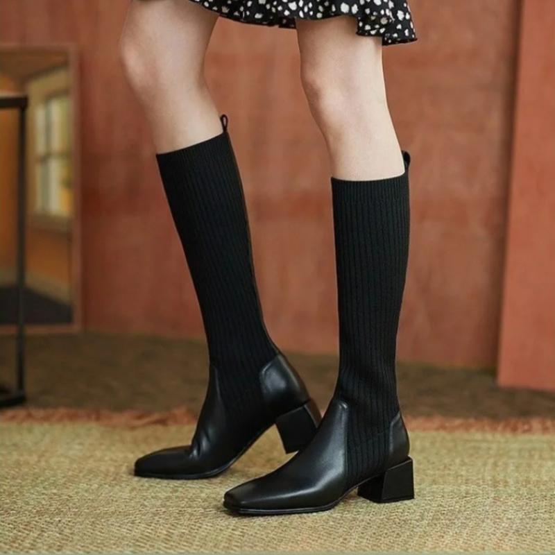 Мода 2024 года, высокие сапоги до колена, женские зимние сапоги, новинка, женская длинная обувь для женщин, элегантная осенняя коричневая танкетка, эластичная — купить товар онлайн с бесплатной доставкой по всему миру!