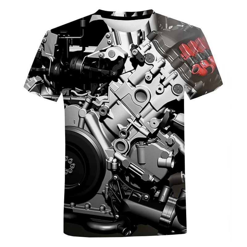 Футболка с 3D изображением двигателя, двигатель суперкара, механический принт, футболка в стиле Харадзюку для мужчин и женщин, летние модные повседневные крутые топы с короткими рукавами