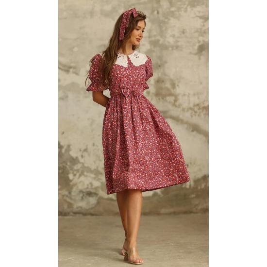 Винтажное платье из поплина с воротником-фестоном и цветочным принтом — купить товар онлайн с бесплатной доставкой до всему миру!
