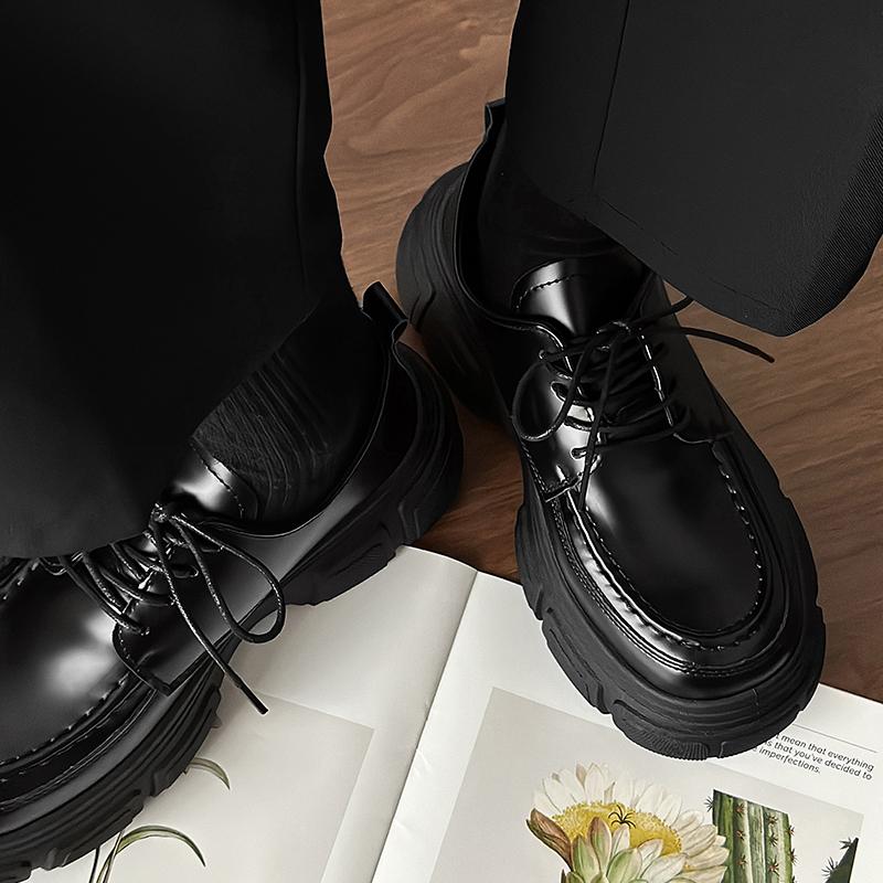 Мужские черные кожаные туфли Harajuku в британском стиле на толстой подошве, повседневные оксфорды, мужские модные туфли на платформе, дерби, платье, мужской тренд