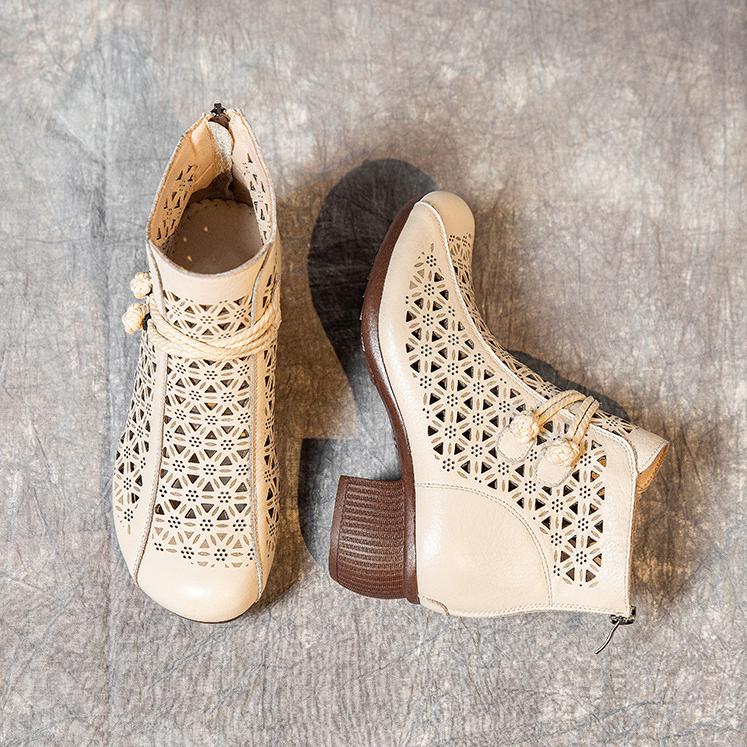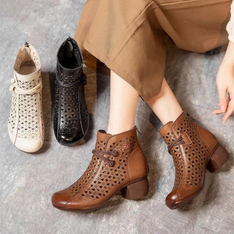 Летние ботинки ручной работы в стиле ретро, босоножки из натуральной кожи на толстом каблуке, универсальная женская обувь