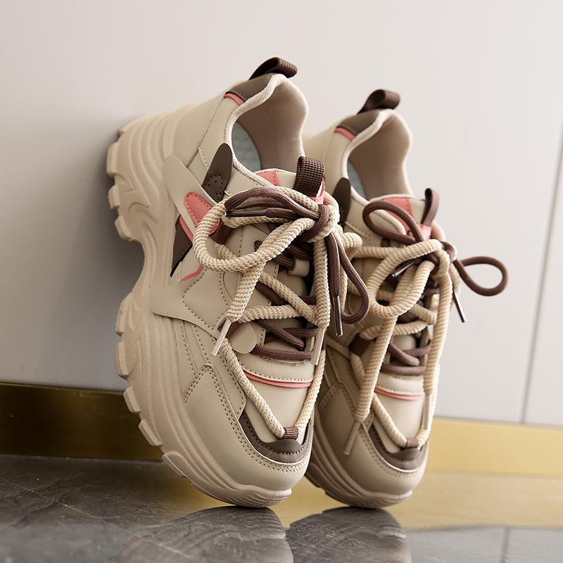 CRLAYDK Массивные кроссовки для женщин Клиновидные Модные Кроссовки «папины» Платформа Повседневные Удобные Лоскутная кожа Для ходьбы Спортивные Теннисные