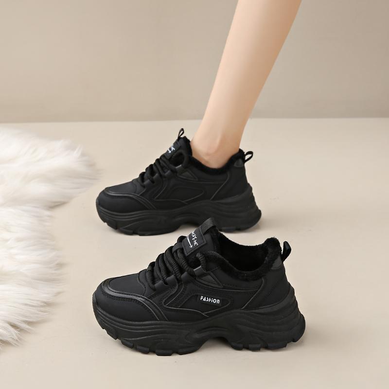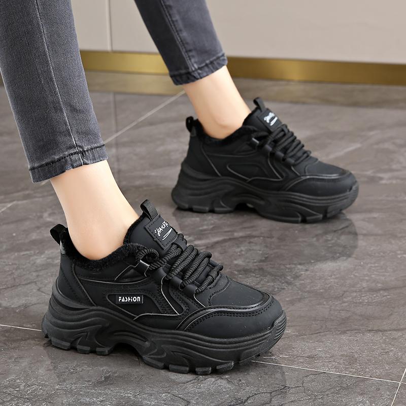 CRLAYDK женские зимние кроссовки на толстой подошве с тонкой меховой подкладкой, удобные кроссовки для ходьбы, повседневные кожаные туфли на танкетке, спортивные теннисные туфли для женщин