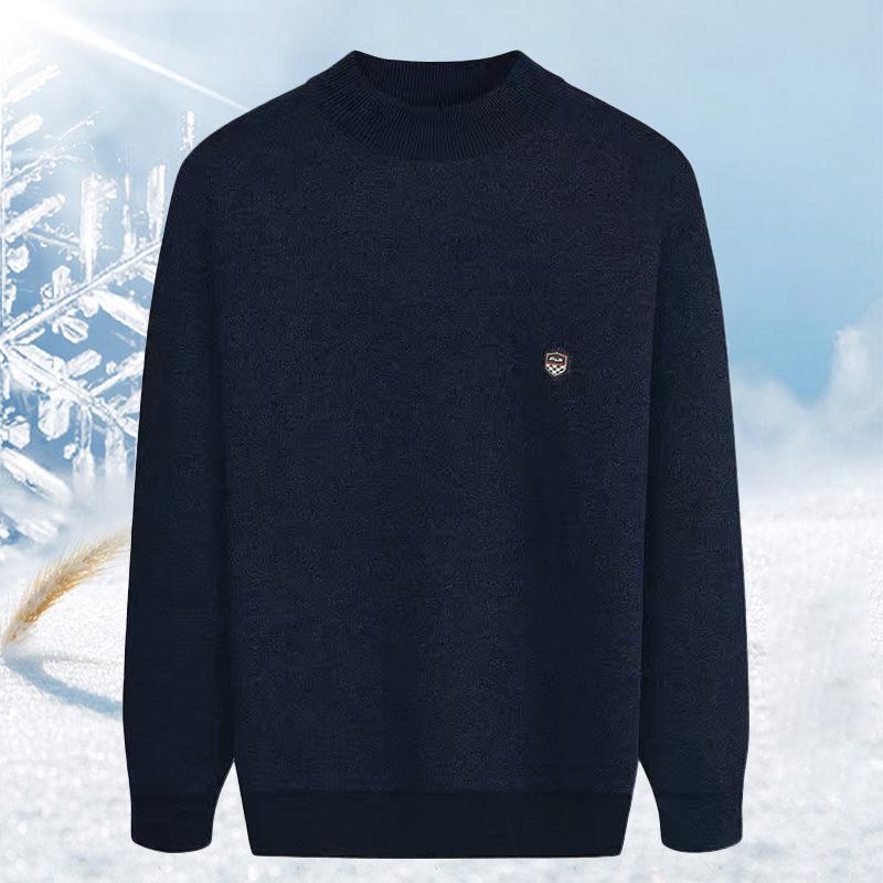 Зимний бархатный свитер с круглым вырезом, вязаный свитер, плюс бархатный теплый пуловер, подходит для пап среднего и пожилого возраста.