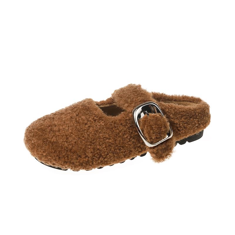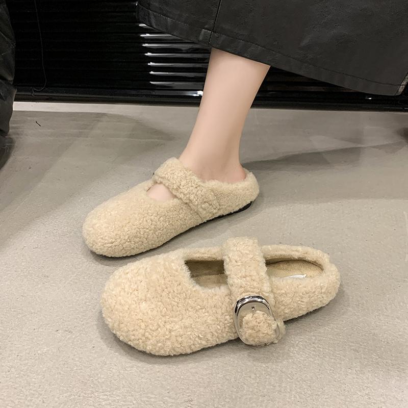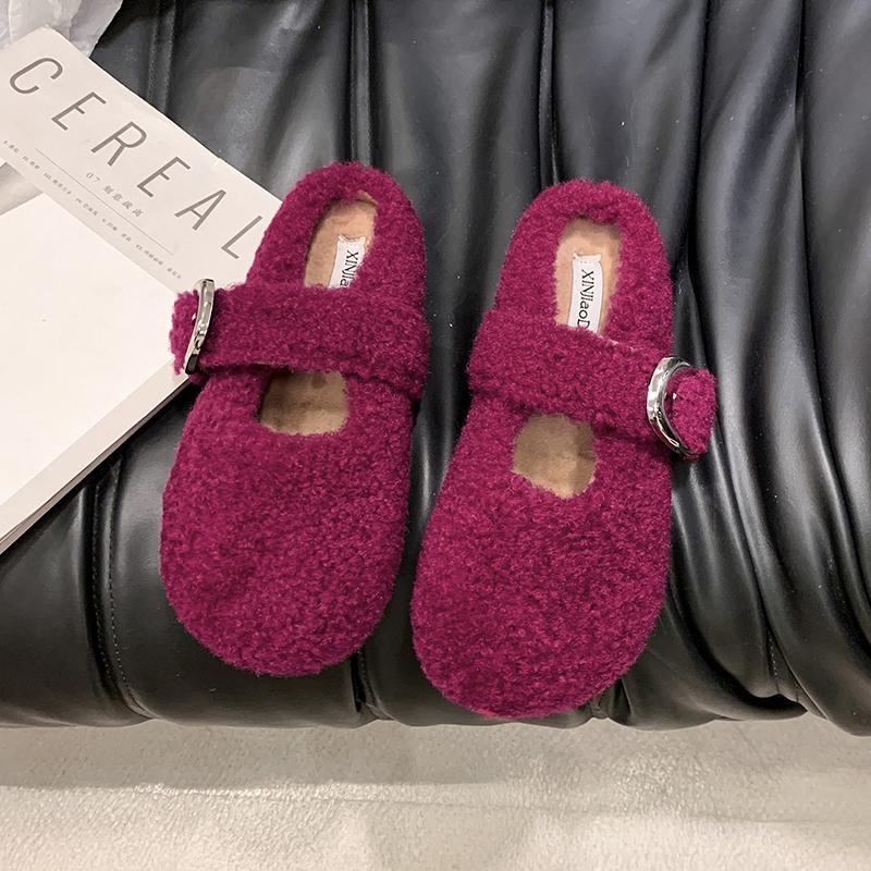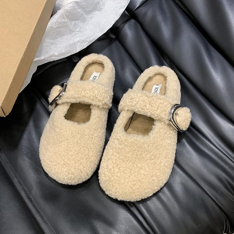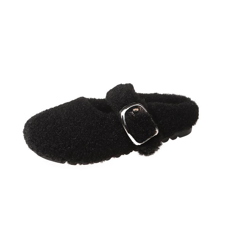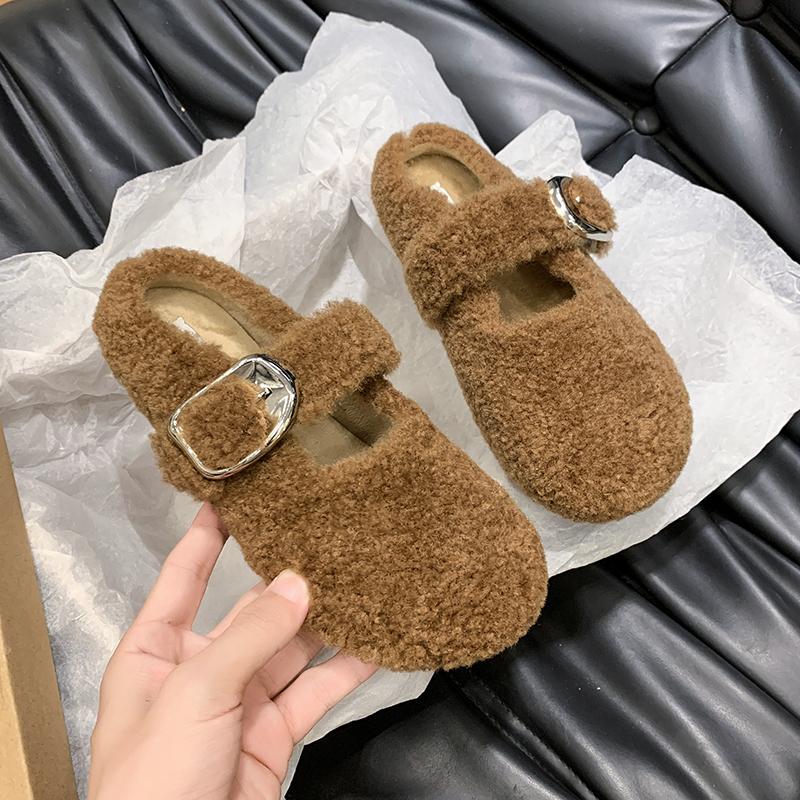 Модные женские зимние модные тапочки Baotou с круглым носком и неглубоким горлом из замши с мягкой подошвой, нескользящие, хлопковые, с цепочкой