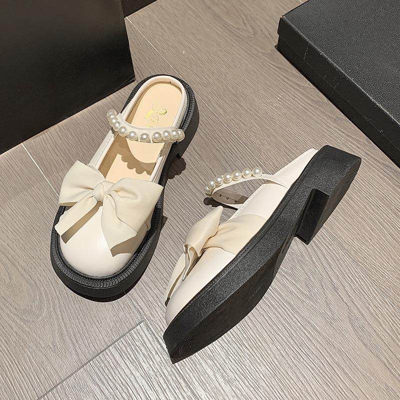 Мода 2024 Лето Новые женские туфли Модные тапочки с бантом на толстом каблуке для женщин Винтажные туфли в британском стиле с жемчугом для женщин — купить товар онлайн с бесплатной доставкой по всему миру!