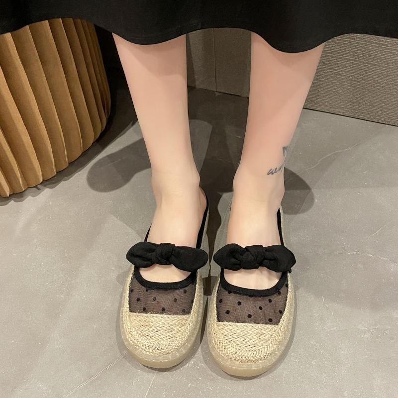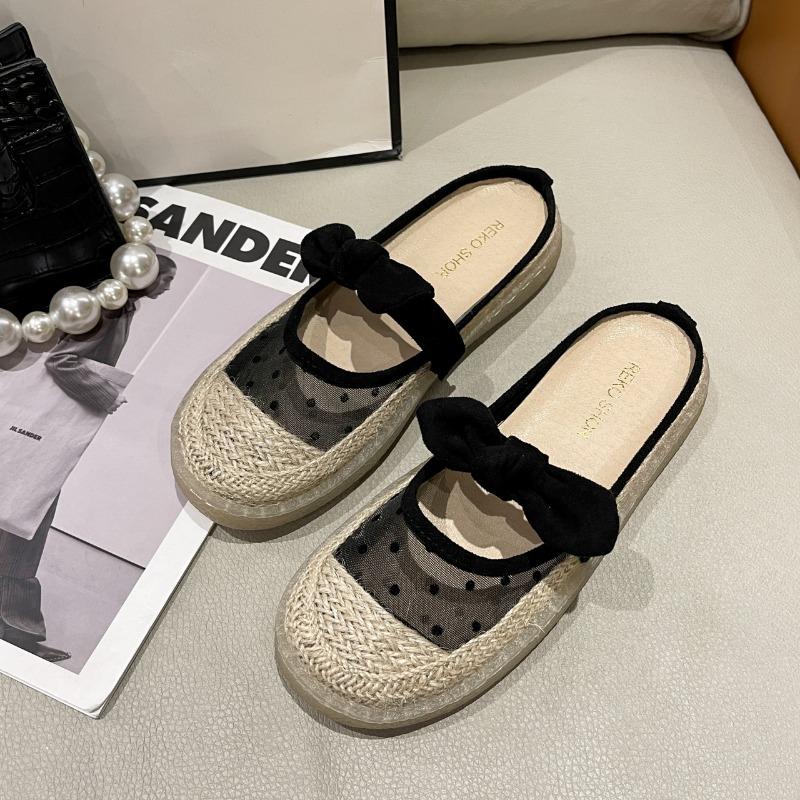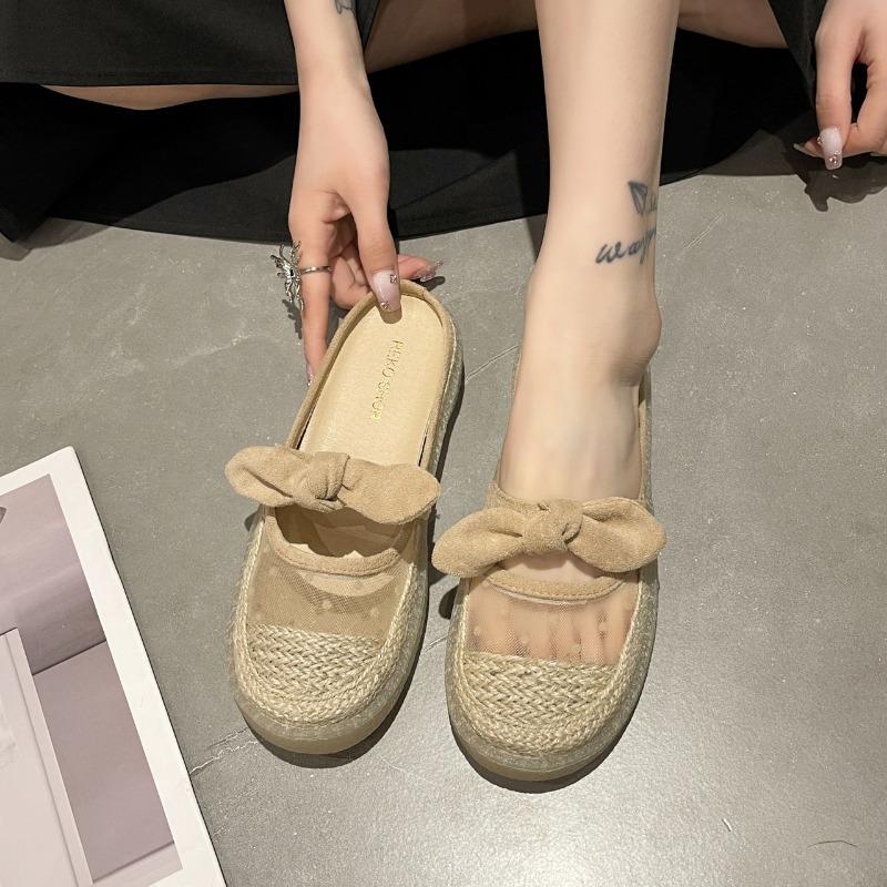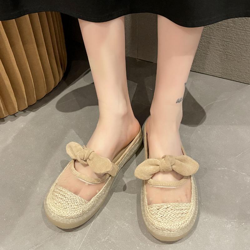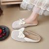 Модные женские марлевые полутапочки с головкой, летние новые круглые босоножки с толстой подошвой и бантом