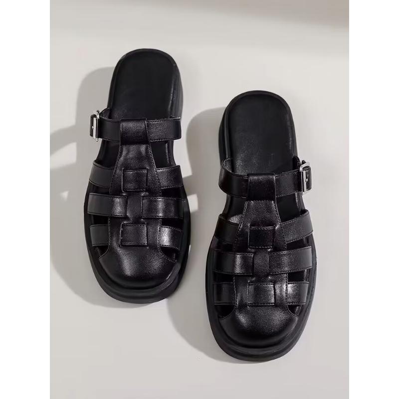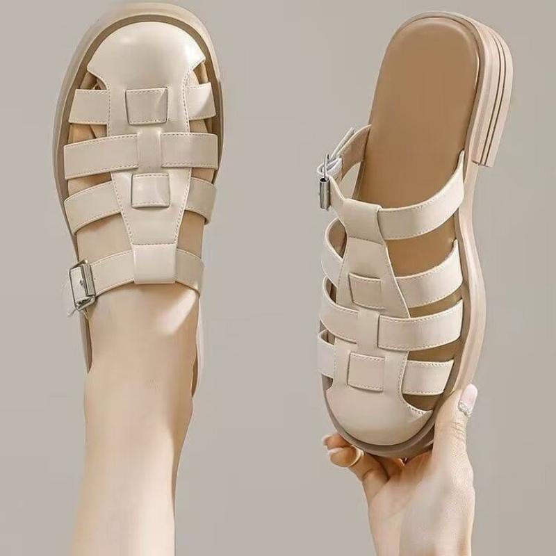 Модные женские сандалии, женские летние тапочки в римском стиле с вырезами 2024 года, новые гладиаторские пляжные туфли на плоской подошве для женщин, обувь на толстой подошве Zapatos De Mujer