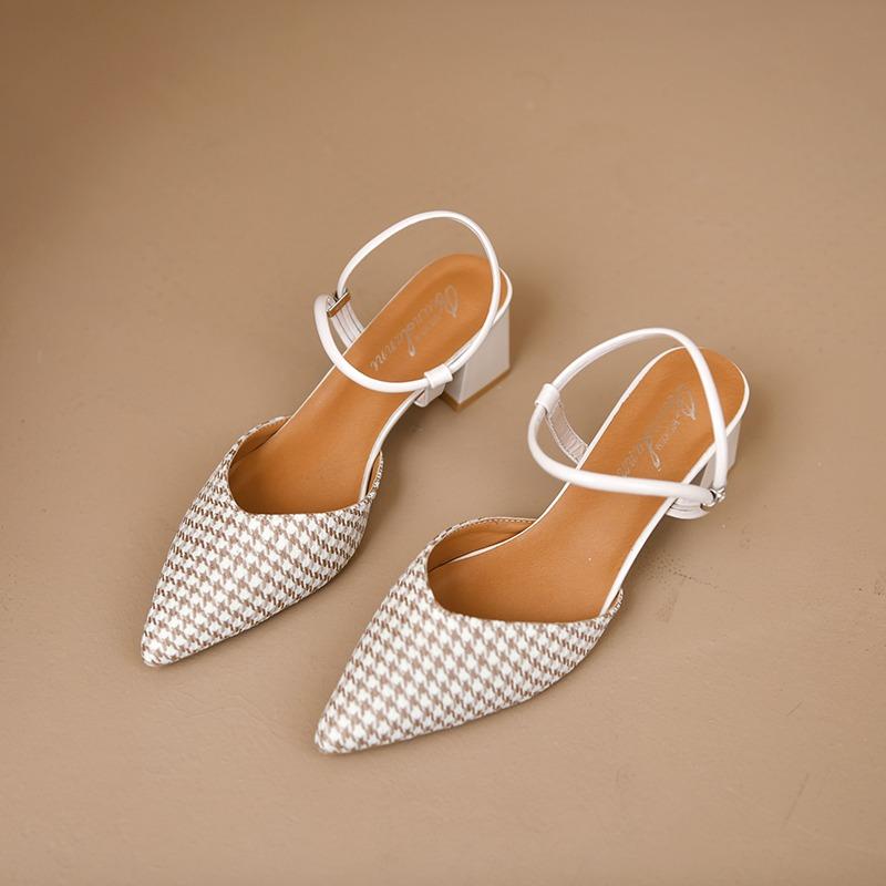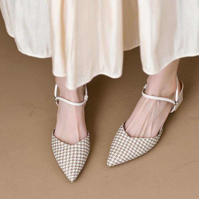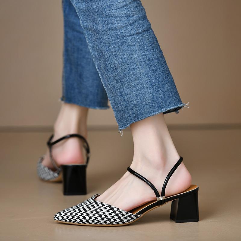 Модные женские летние цветные остроносые тапочки, новые бао-головы с одним словом, пряжка в стиле ретро после пустых сандалий двойного назначения