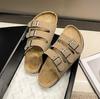 Плоские тапочки женские мужские тапочки роскошные домашние тапочки с нескользящей пробковой подошвой женские пляжные шлепанцы для дома сандалии2024
