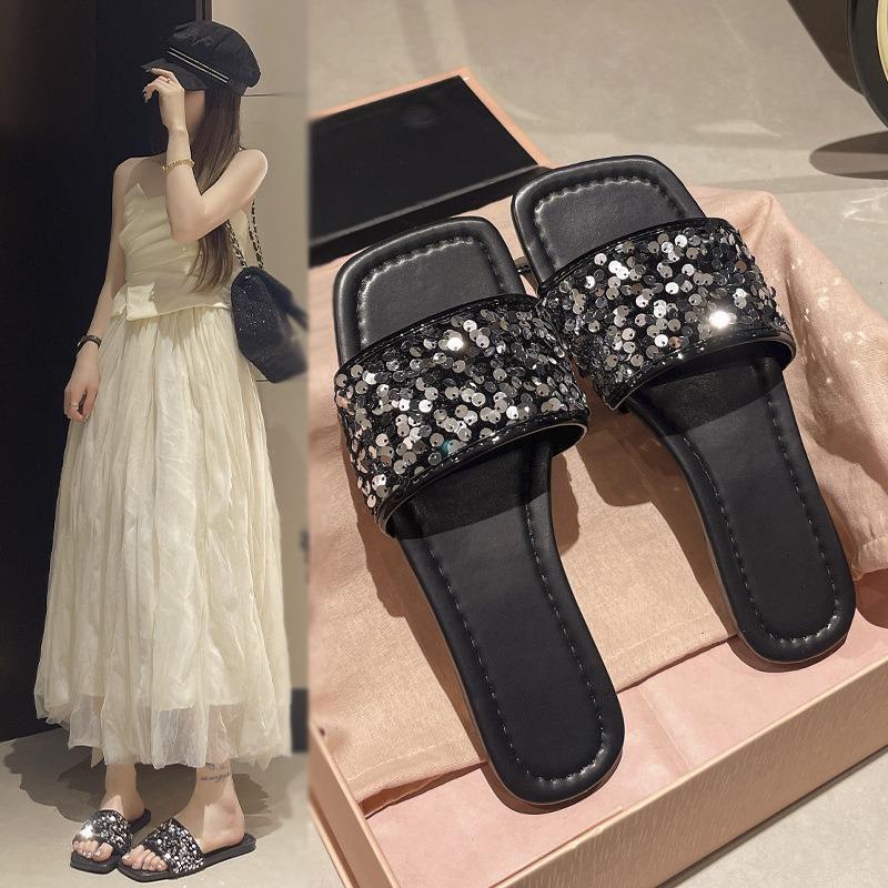 Женские тапочки Летние сандалии Модные сандалии с открытым носком Уличные Повседневные Вечерние Блестящие Удобные Пляжные туфли
