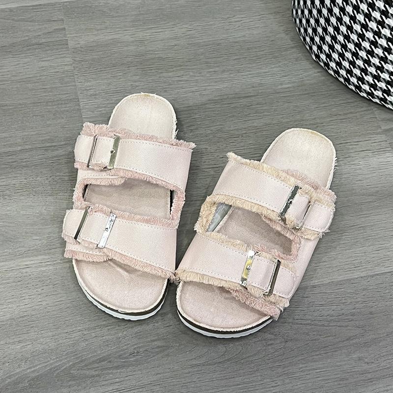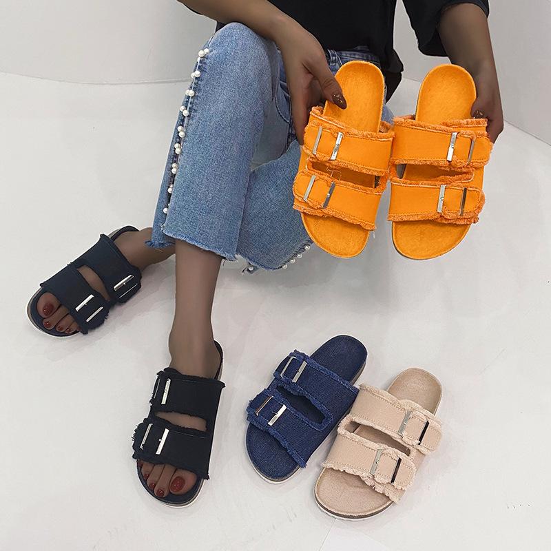 Летние джинсовые тапочки для женщин 2024 года, синие сандалии на плоской подошве с закругленным носком, женские повседневные шлепанцы, женские пляжные тапочки на плоской подошве, обувь Zapatos