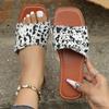 Сандалии на плоской подошве для девочек больших размеров, летние 2024 г., новые тапочки на плоской подошве с квадратной пряжкой и леопардовым принтом, 43 ярда