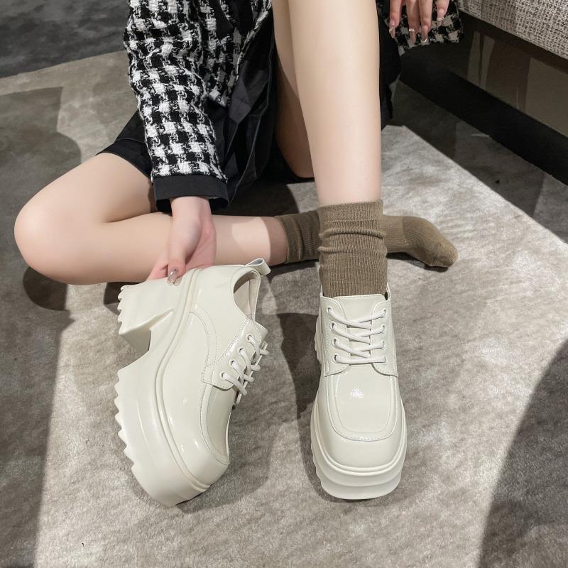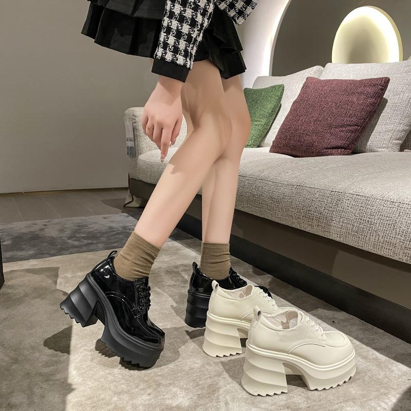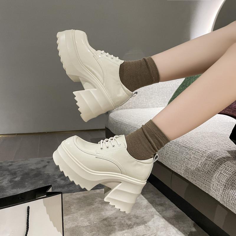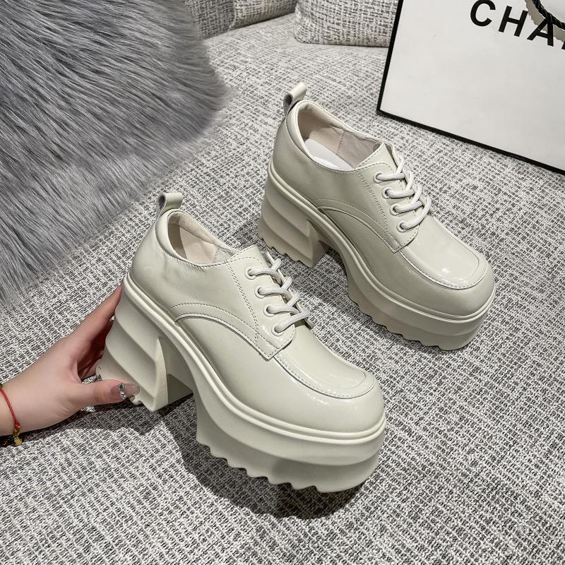 Модные туфли на платформе для женщин из натуральной кожи 2024 года, новые осенние туфли на высоком толстом каблуке со шнуровкой для женщин