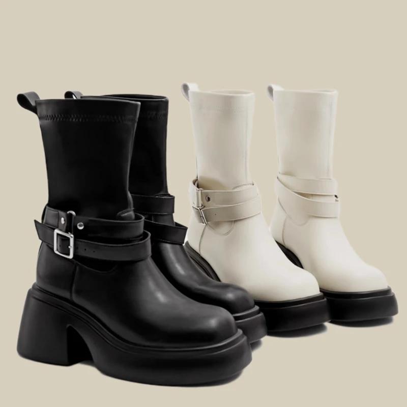 Платформа Женские Ботинки Челси До Середины Икры Новые Зимние Туфли На Среднем Каблуке Массивные Мотоциклетные Ботинки Вечеринка Готика Снежные Туфли-лодочки Mujer Botas