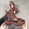 Римские туфли Сандалии с открытым носком на толстой подошве Весна-лето Повседневные сандалии с пряжкой сзади Пустые винтажные сандалии с высоким берцем Босоножки на платформе