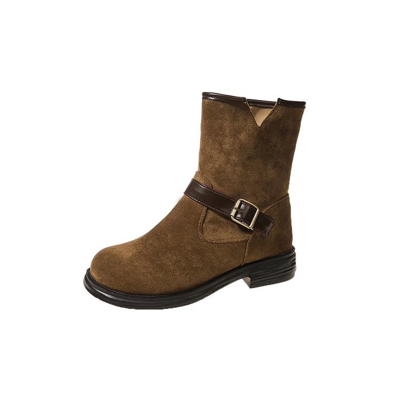 Модные женские зимние ботинки на толстой подошве из замши, модные удобные повседневные туфли для женщин 2024 года, зимнее дизайнерское платье для прогулок, челси, ботинки Mujer