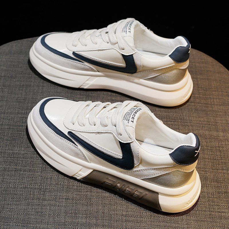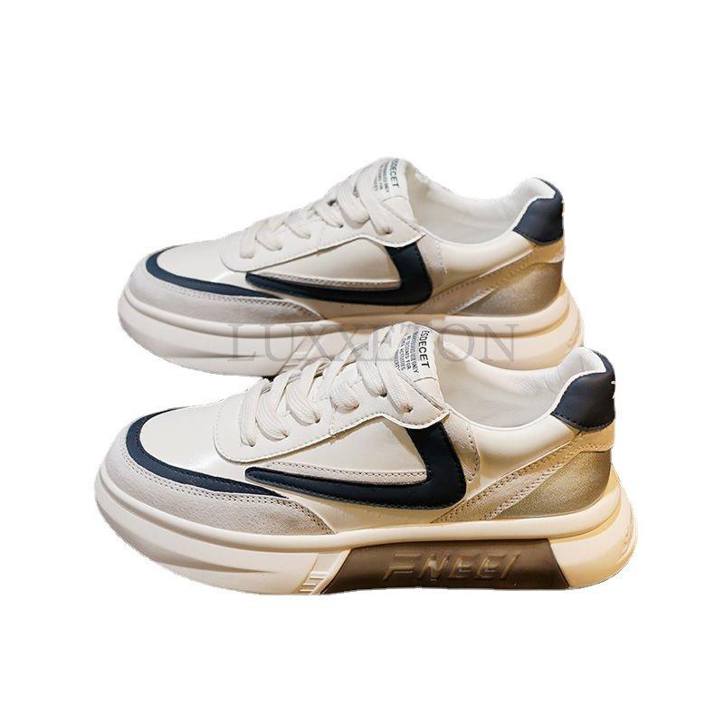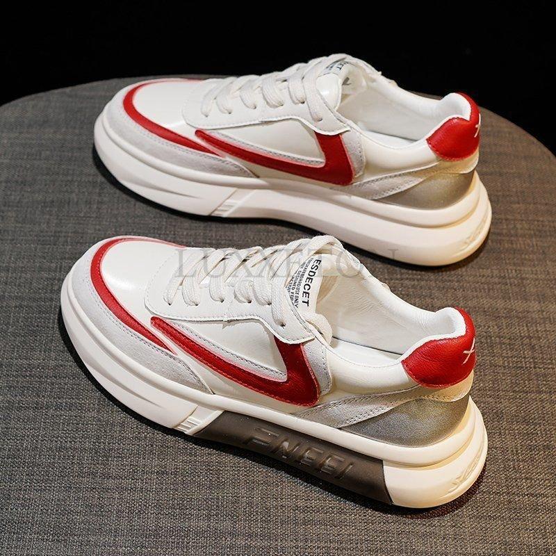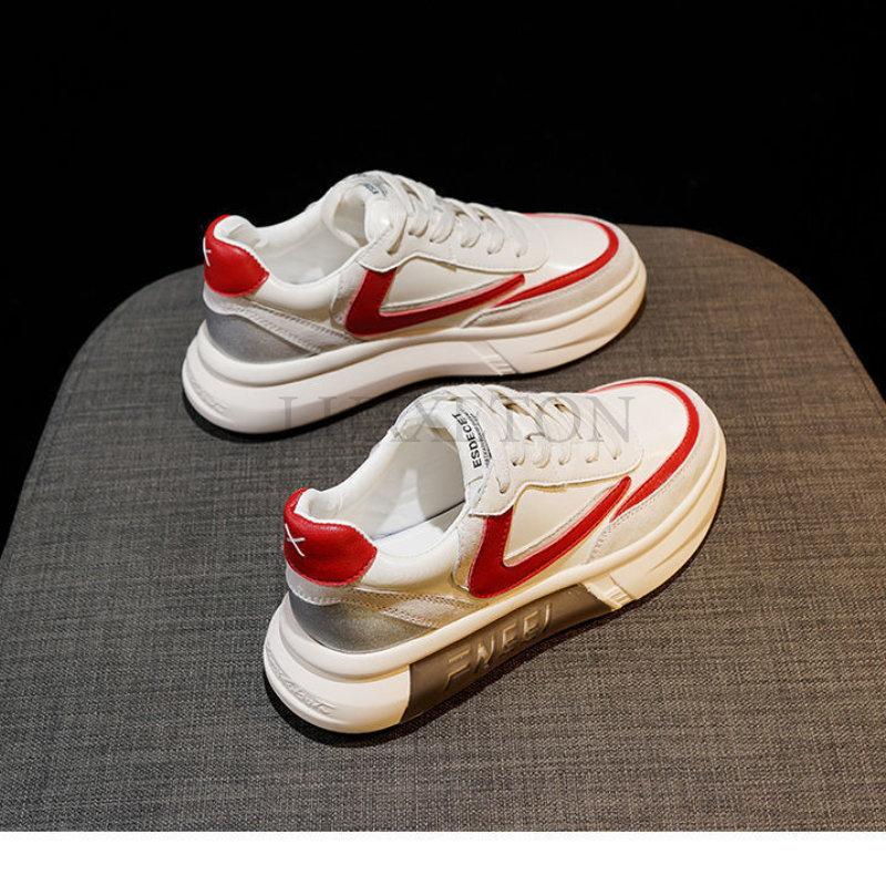 Повседневные кроссовки на платформе Женские кожаные белые Женские спортивные туфли Летние на толстой подошве Модные туфли на платформе Вулканизированные туфли