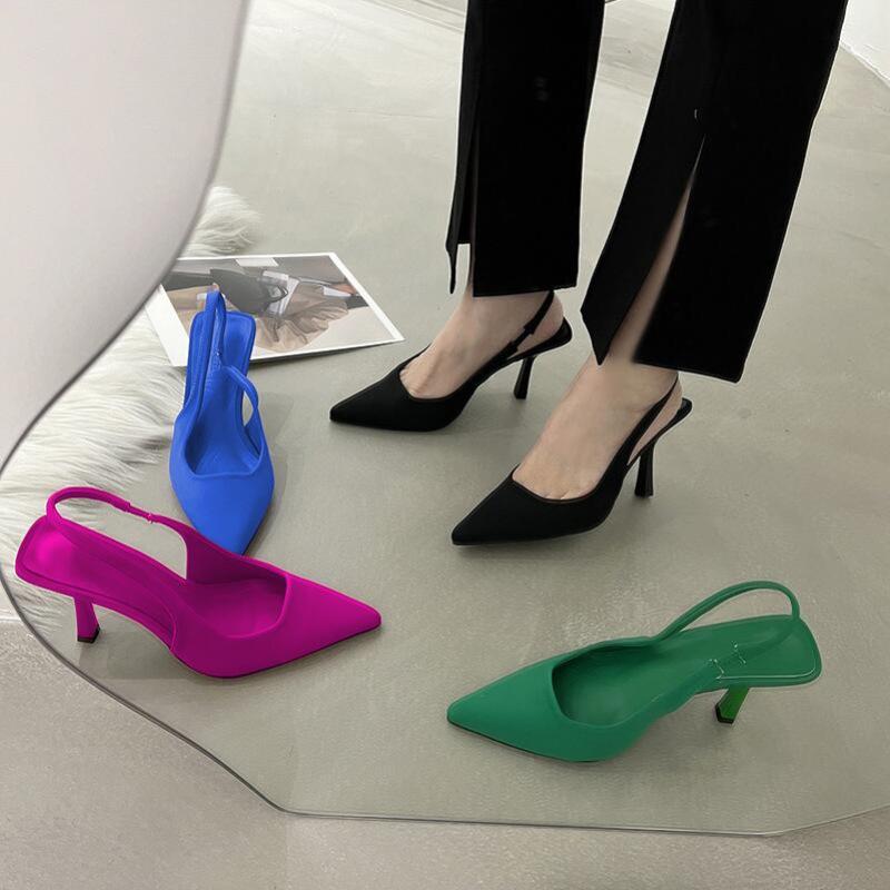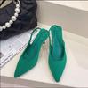 Женские босоножки на высоком каблуке с острым носком, зеленые туфли-лодочки с открытой пяткой, тонкие туфли на щиколотке, вечерние женские сексуальные босоножки
