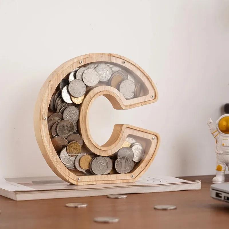 Английский алфавит копилка монета деньги копилка деревянная буква копилка настольное украшение домашний декор поделки для детей