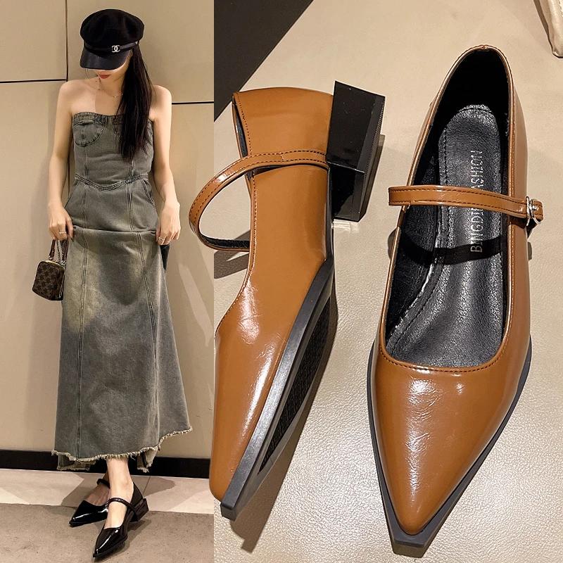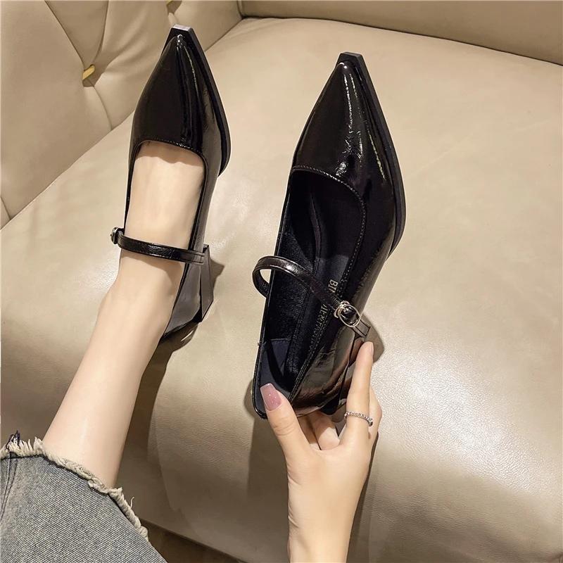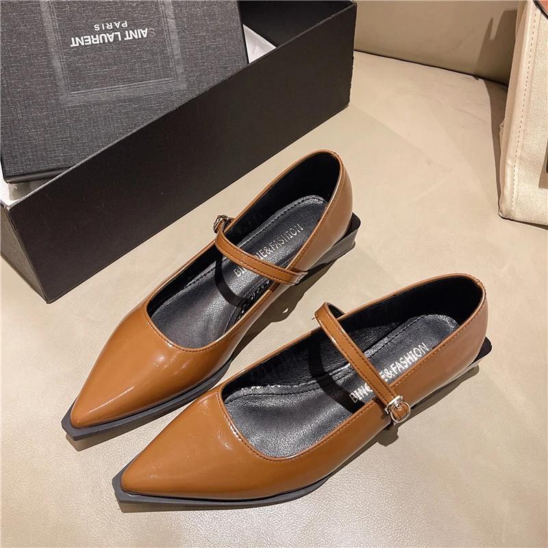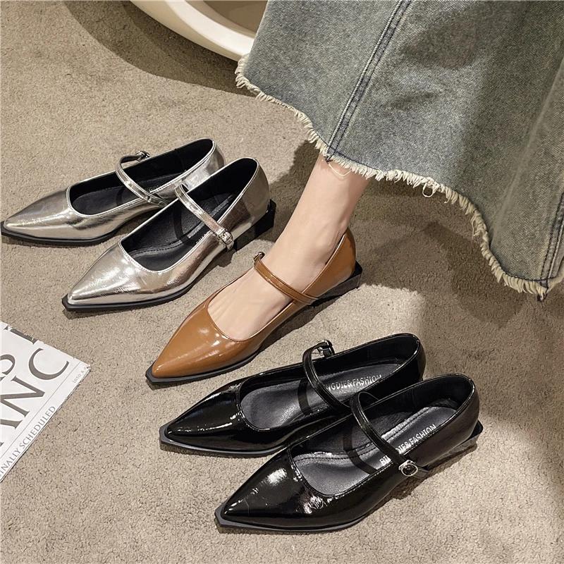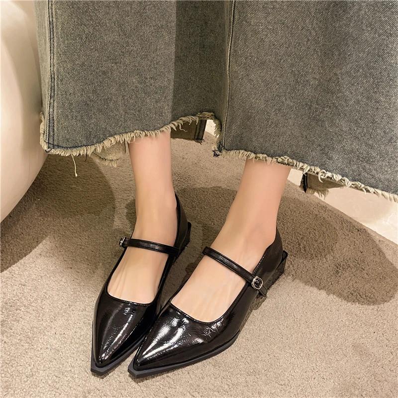 Модные женские модные французские повседневные туфли с острым носком Kawaii однотонные женские туфли с плоской подошвой и металлическим мелким носком Mary Slim Shoes