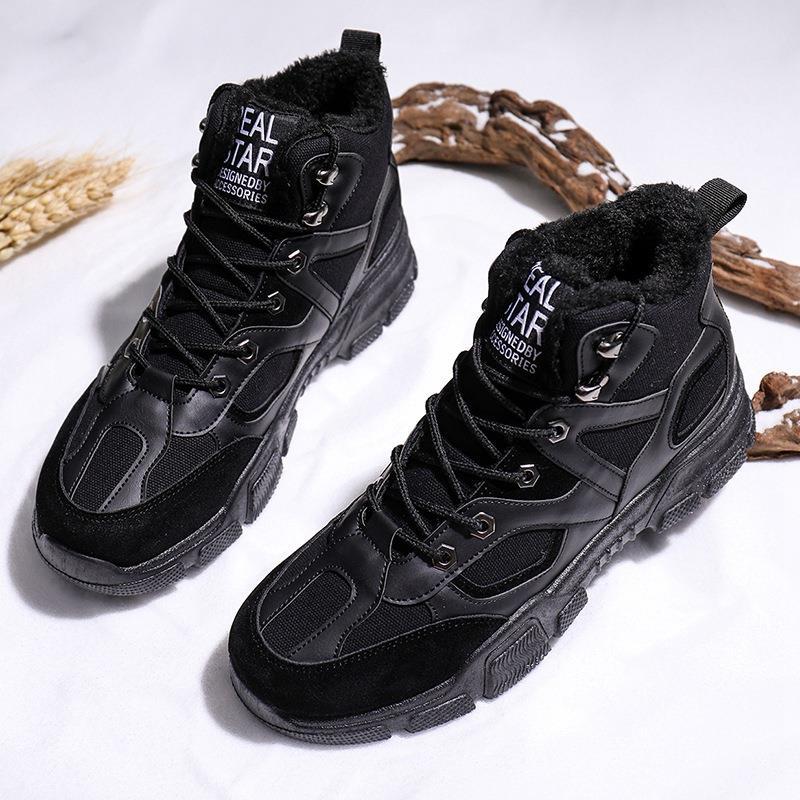 Мужская зимняя обувь на шнуровке, большие размеры 39-44, теплые ботильоны, ботинки Hombre из кожи, теплые плюшевые кроссовки, большие размеры