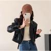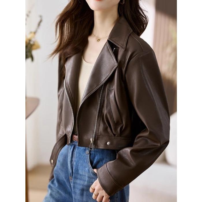 Стильная короткая мотоциклетная куртка кофейного цвета, женская куртка из искусственной кожи с дизайнерским смыслом
