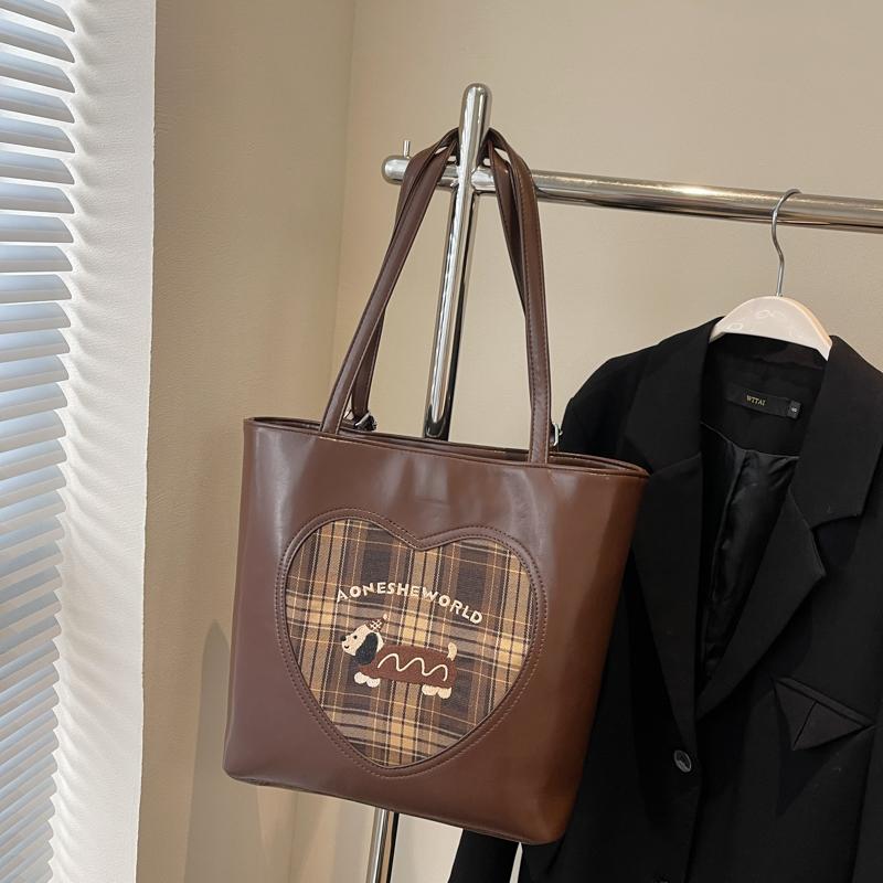 Сумка Happy Dog большой вместимости для женщин, осенняя новая модная ретро-сумка-тоут, клетчатая сумка на одно плечо для поездок на работу