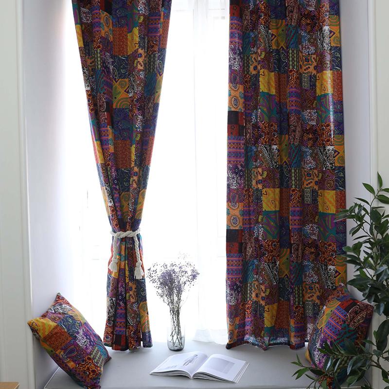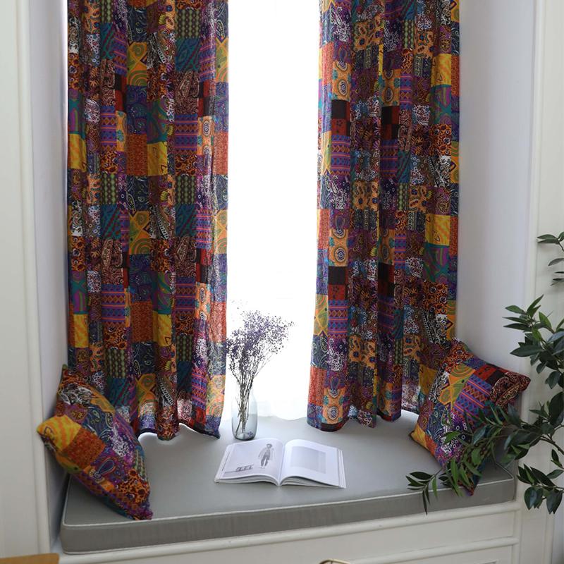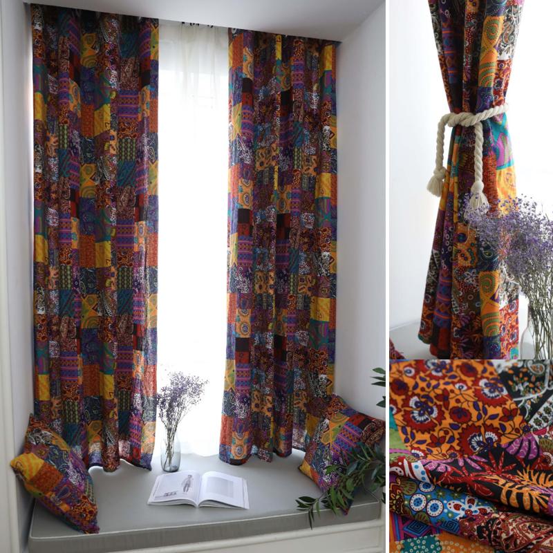 Шторы в стиле ретро в этническом стиле для гостиной, кабинета, спальни, эркерных окон, хлопковые льняные шторы, полузатемняющие