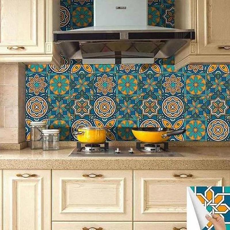 10 шт. этнический стиль ретро плитка наклейки кухня ванная комната стены пол шкаф ящик линия талии настенные наклейки домашний декор
