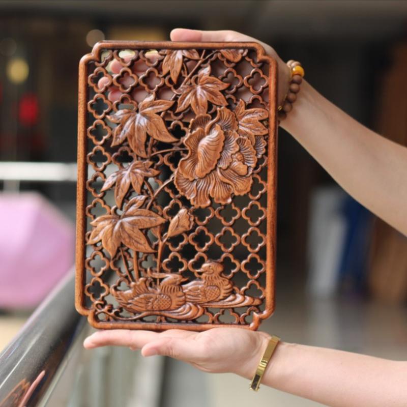 Китайская классическая полая резьба по дереву ремесла камфорная резьба по дереву цветки сливы орхидея фон настенные украшения декор