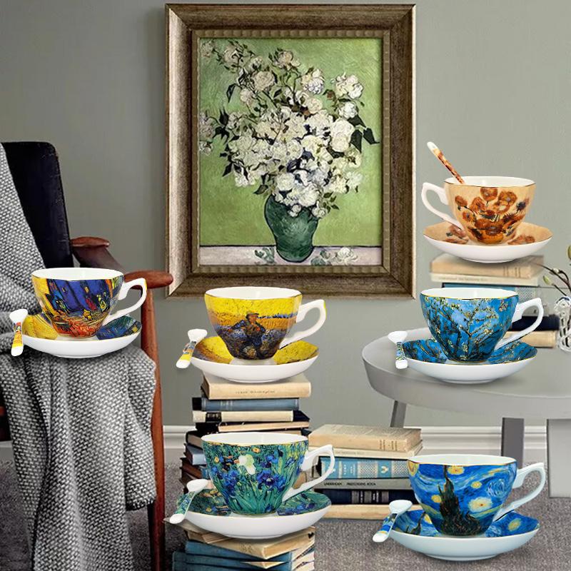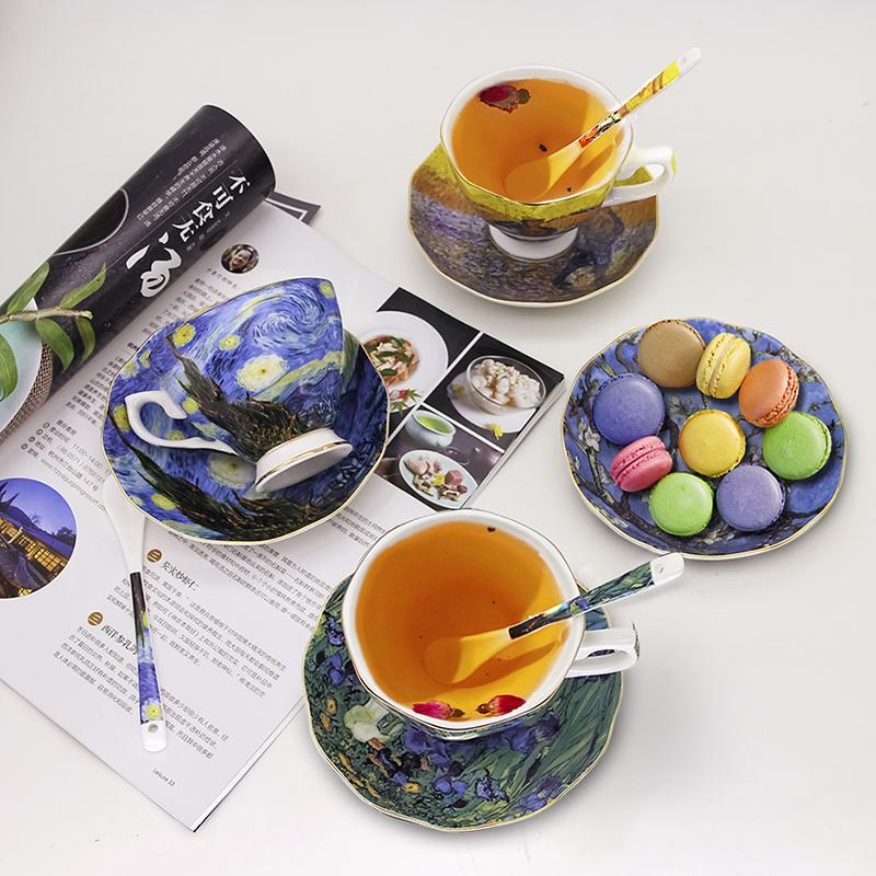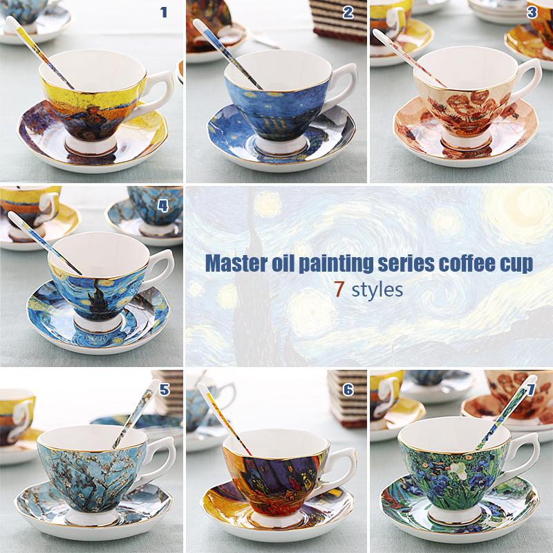 Чашка для кофе из костяного фарфора с блюдцем и ложкой, старинная картина маслом, художественная чашка для эспрессо в кафе, европейская чашка для послеобеденного чая, кофейная кружка