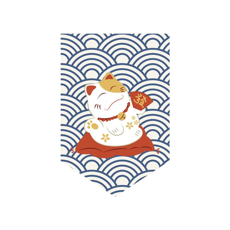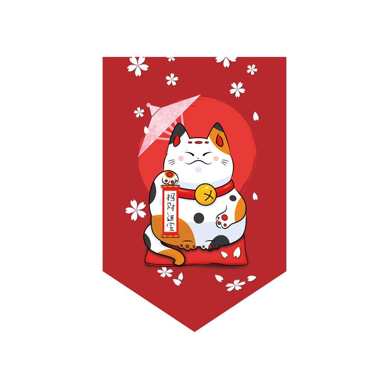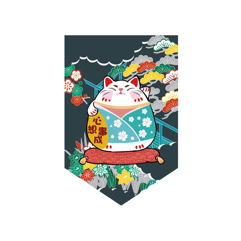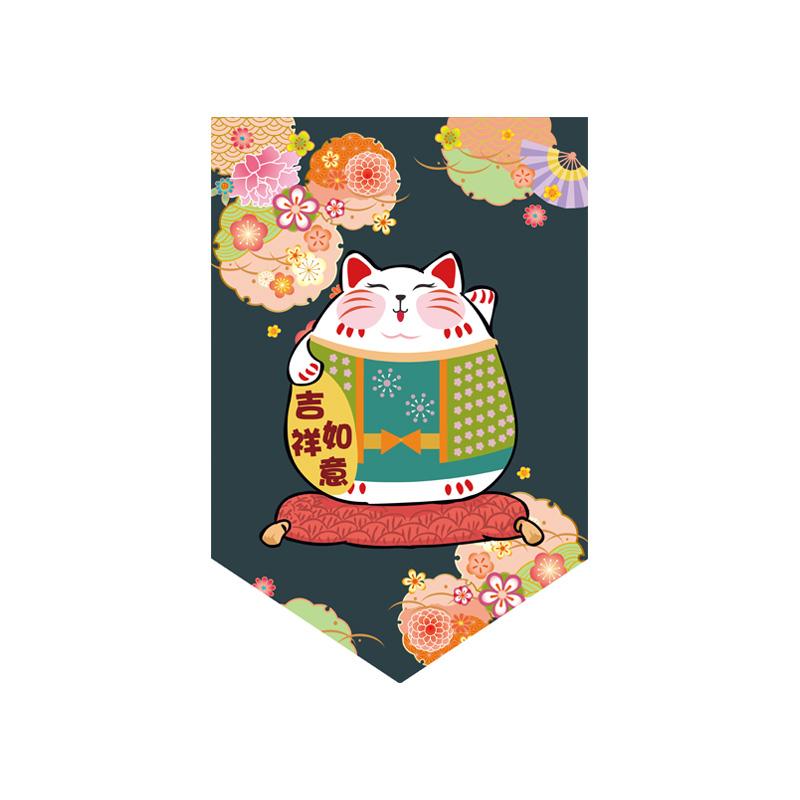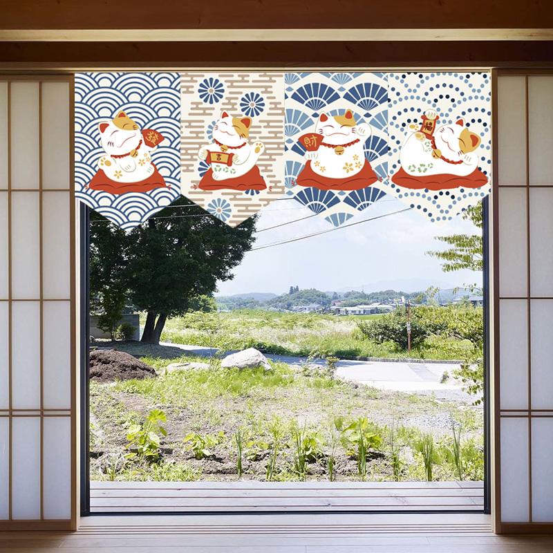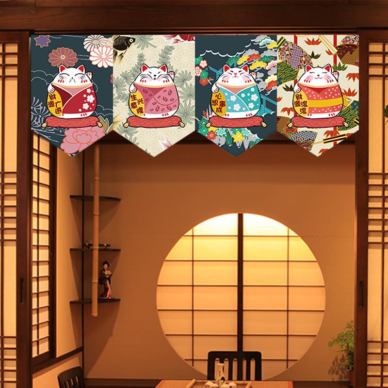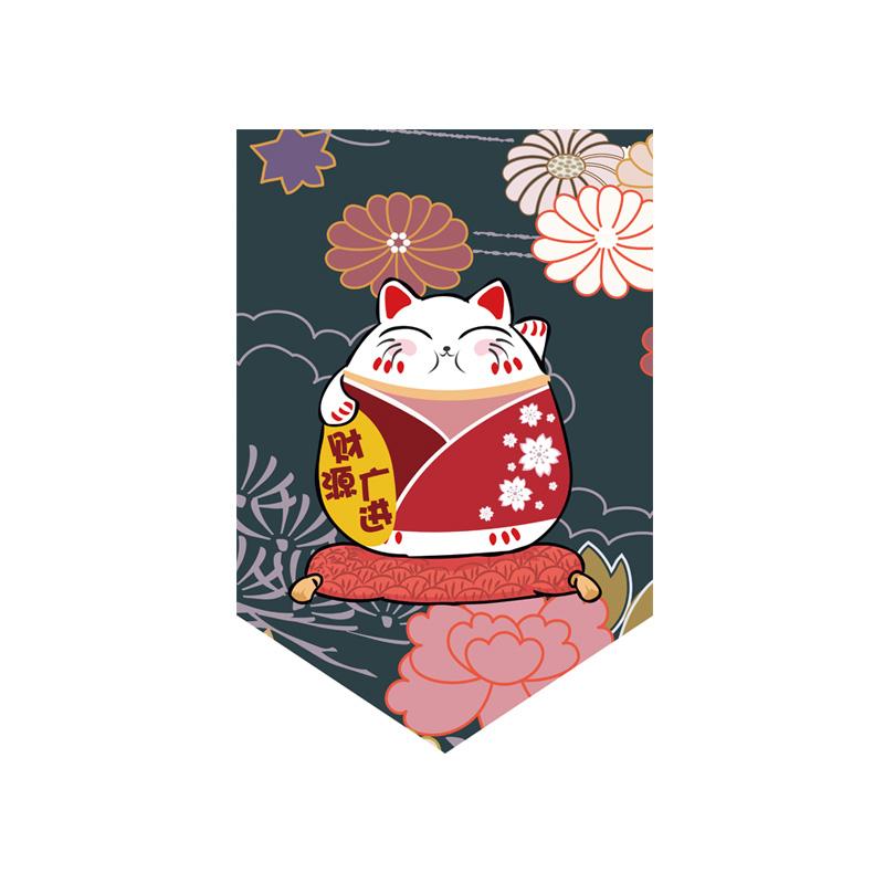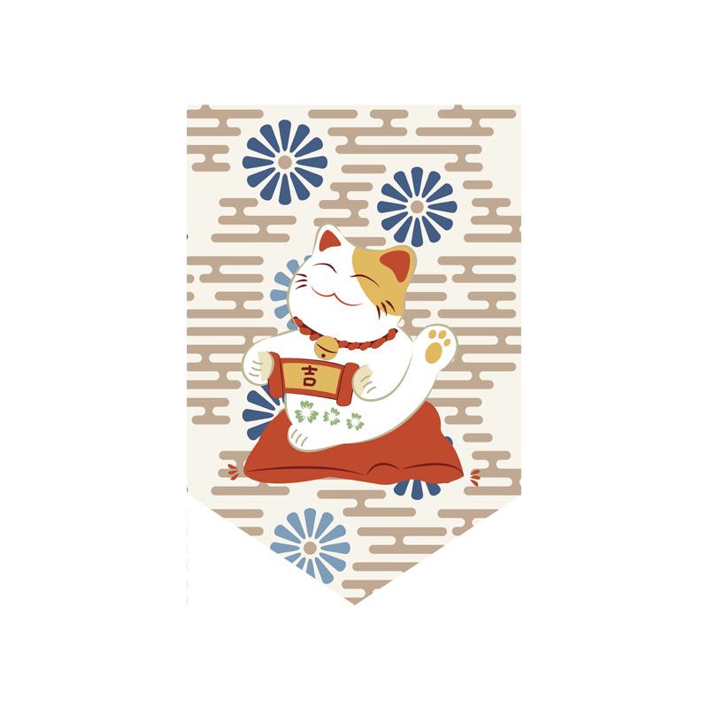 Японская подвесная занавеска для суши-ресторана, магазина, короткая занавеска для входа, треугольный флаг с изображением счастливого кота, кухонный декор, перегородка