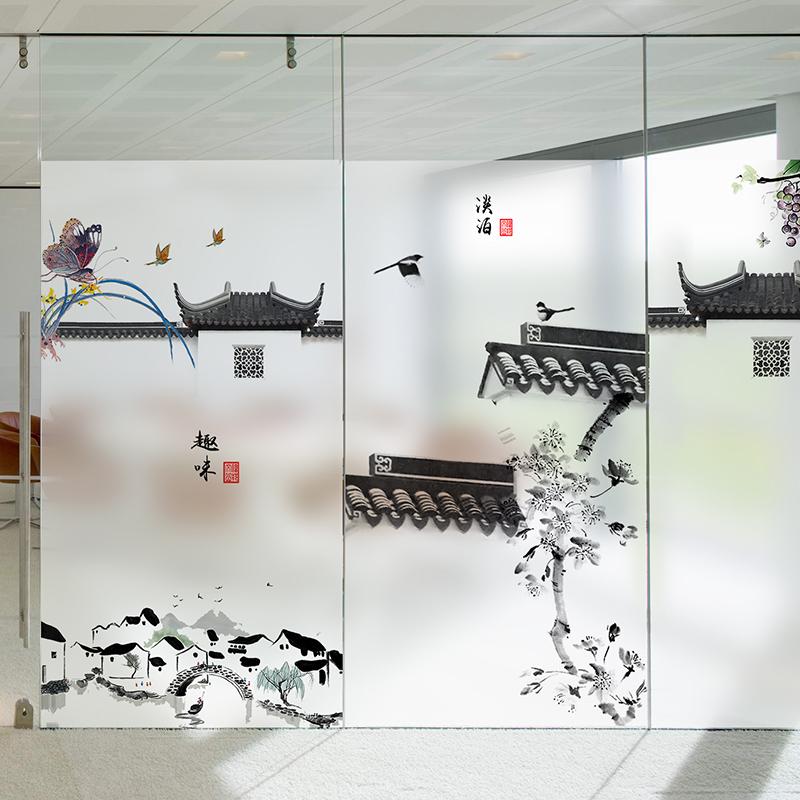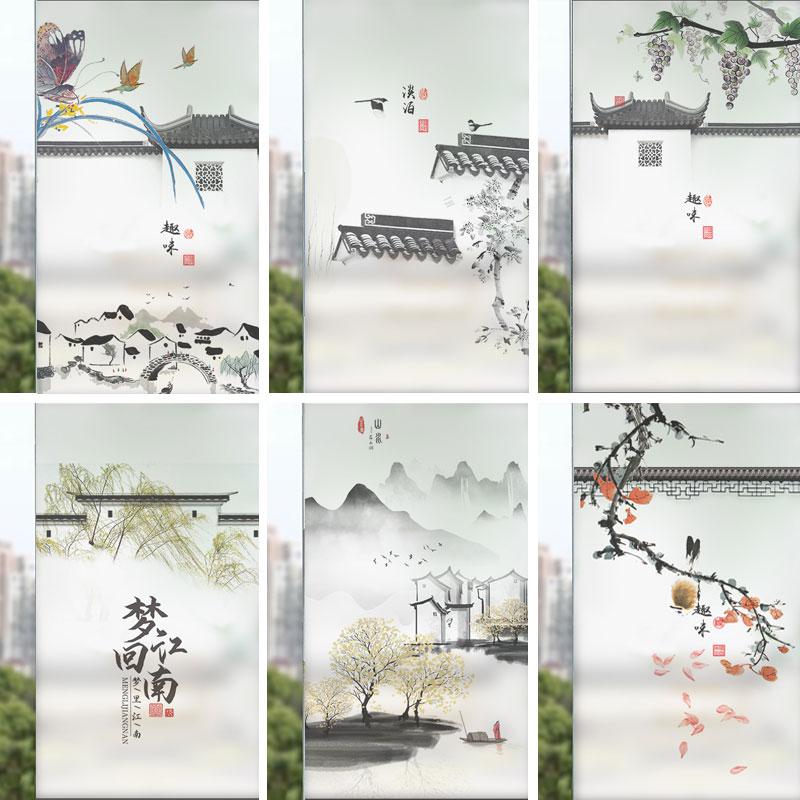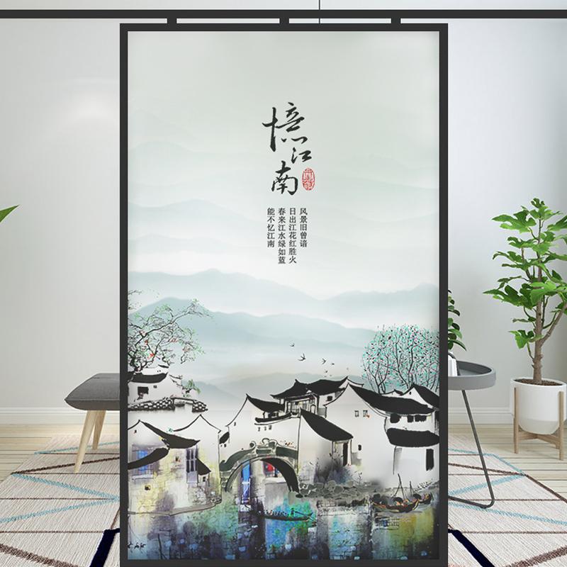 Китайские чернила в стиле Цзяннань, оконные пленки, матовые, статические, липкие, витражные, непрозрачные, для туалета, пленки для конфиденциального стекла