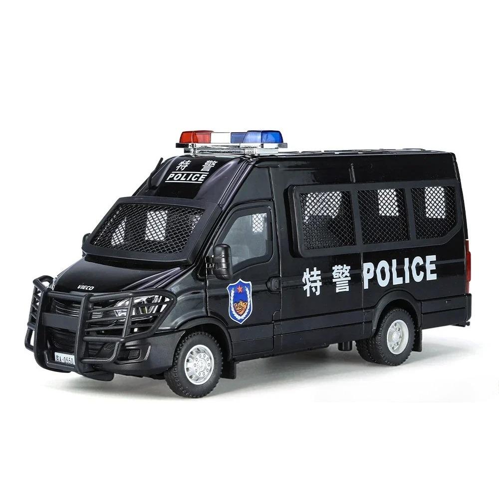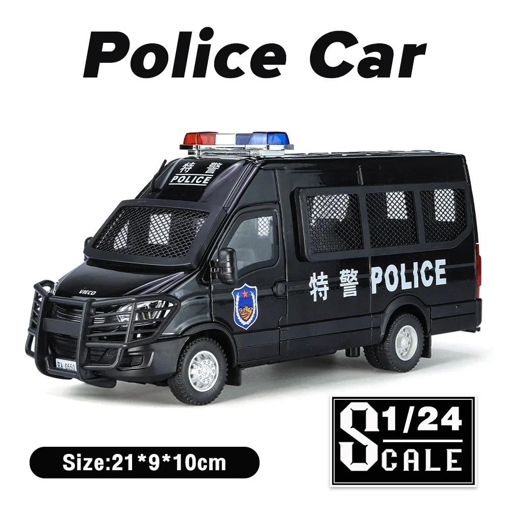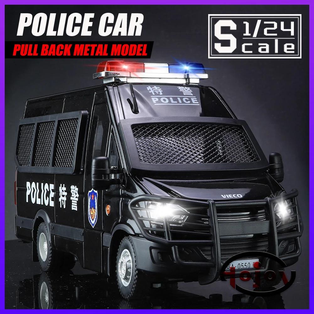 Металлические машинки, игрушки, масштаб 1/24, полицейская машина IVECO, литая модель автомобиля из сплава, подарок для мальчиков, детей, игрушечные машинки со звуком и светом