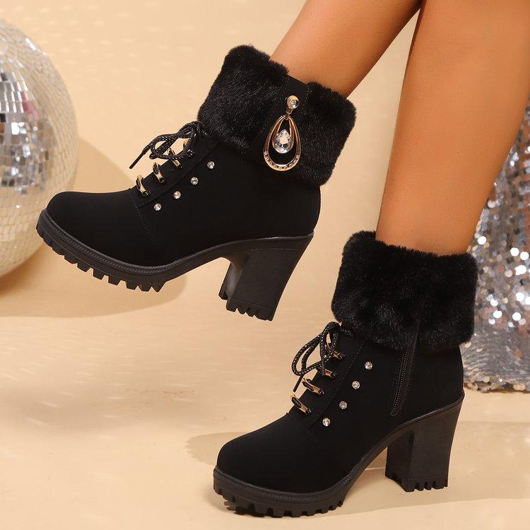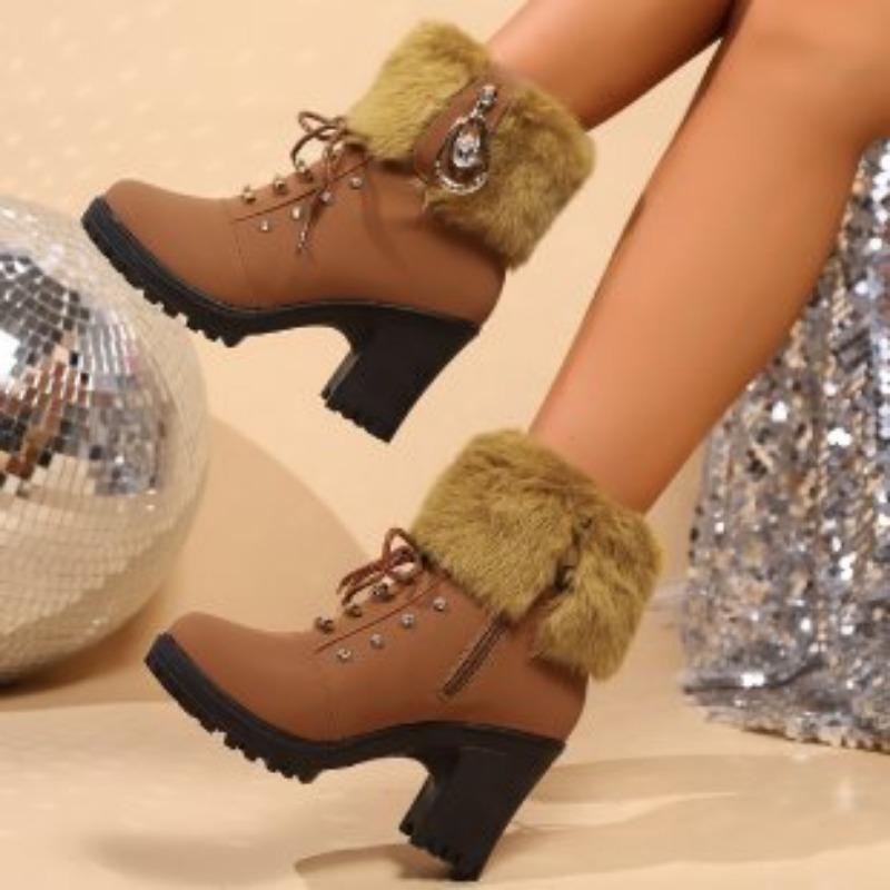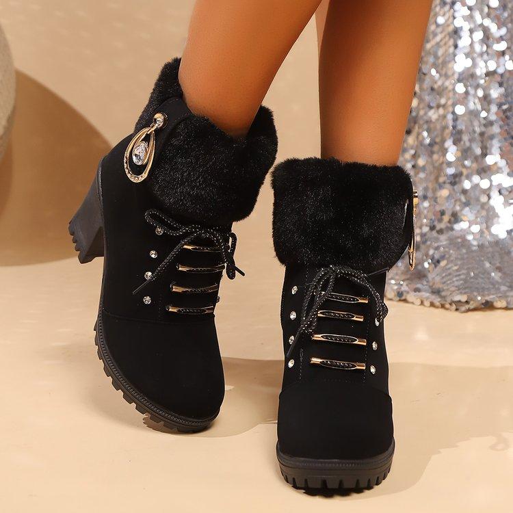 Модные зимние сапоги для женщин на среднем каблуке, элегантные женские модные ботинки, толстые теплые сапоги из искусственного меха, модные сапоги 2024 года