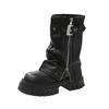 Распродажа модной женской обуви 2024 года. Модные женские ботинки с боковой молнией. Зимние ботинки с квадратным носком и средней платформой на толстом каблуке.
