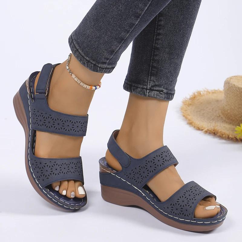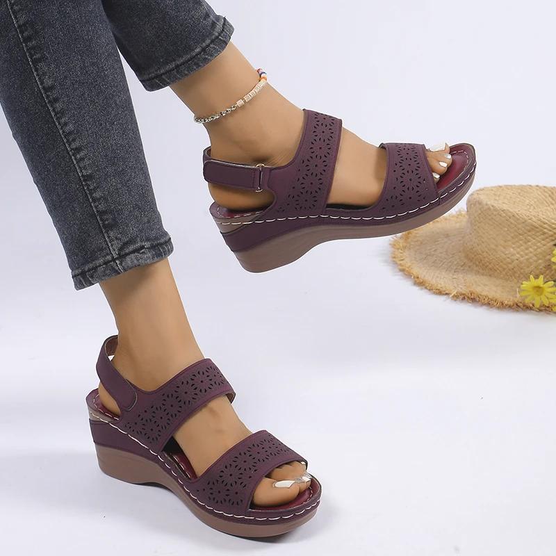Мода 2024 года, горячая распродажа обуви, женские сандалии с открытым носком, летние римские полые однотонные повседневные пляжные босоножки на платформе и танкетке большого размера