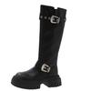 Модная обувь для женщин 2024 Бренд Пряжка-ремень Женские сапоги Модная металлическая отделка Современные сапоги Женские Новые Круглый носок Платформа До середины икры