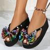 Мода 2024 года, женская обувь, большие размеры, женские тапочки, новые повседневные тапочки с блестками и бабочкой, женские летние тапочки на танкетке с бисером