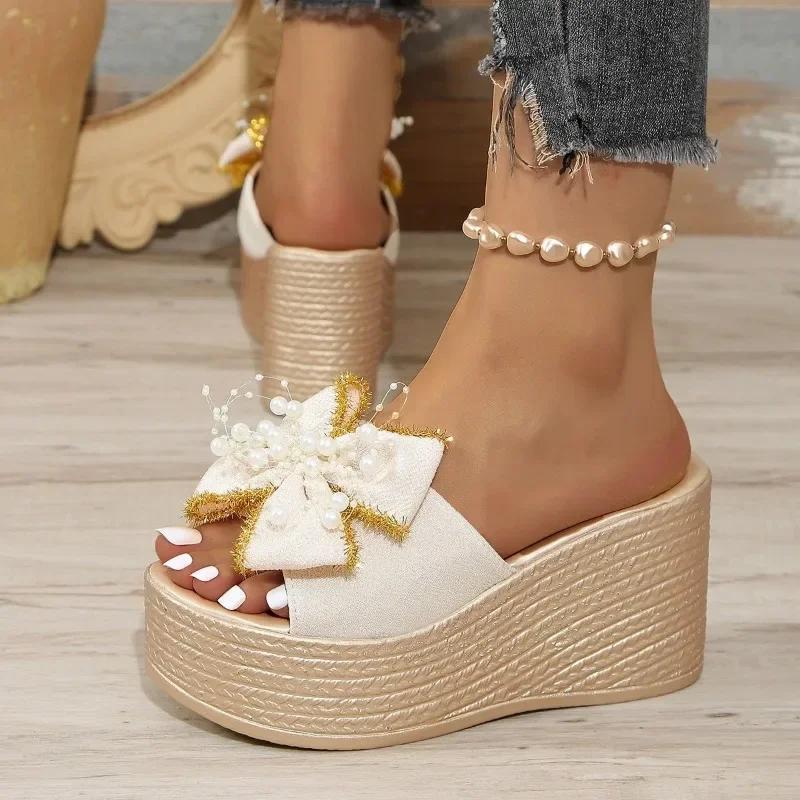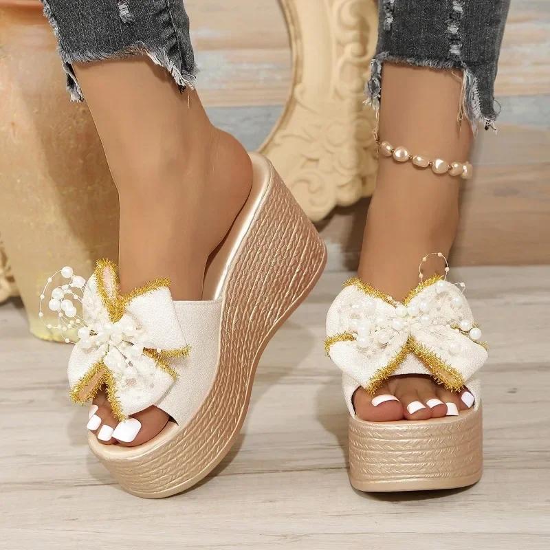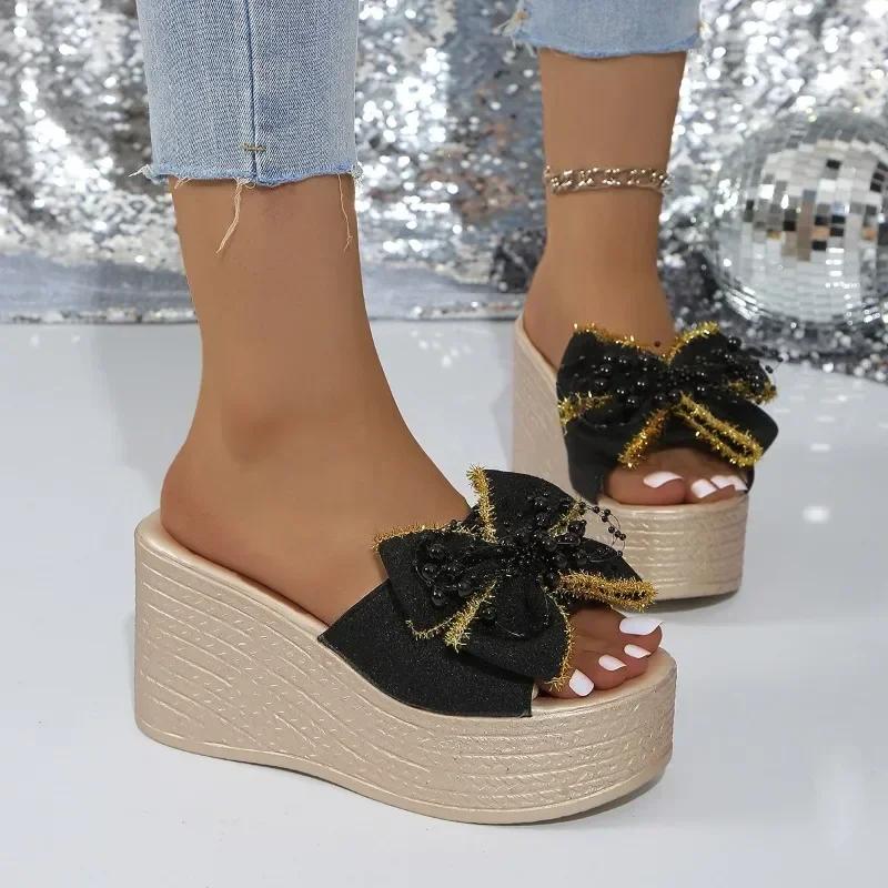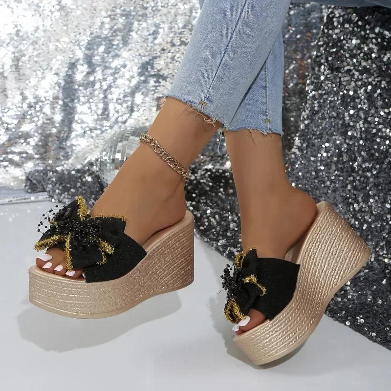 Модная женская обувь 2024 года, горячая распродажа, женские тапочки больших размеров, модные повседневные тапочки с бабочкой, женские новые тапочки на танкетке с открытым носком