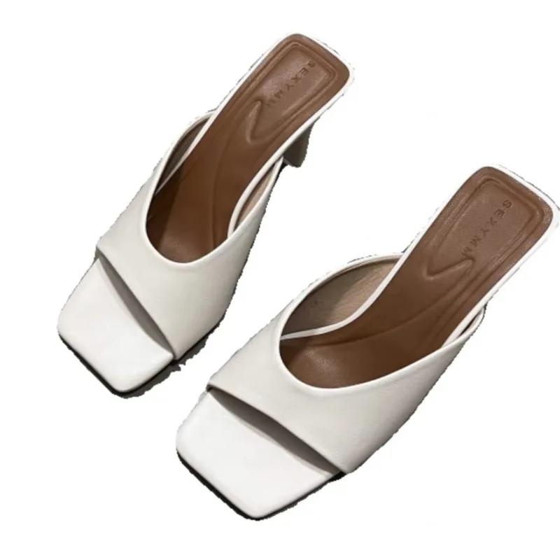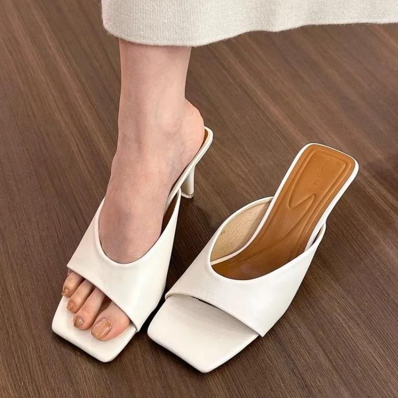 Модная женская обувь 2024 года, модные туфли с открытым носком, женские тапочки, летние туфли с открытым носком, однотонные туфли на шпильке или тонком каблуке