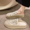 Модные женские тапочки, толстые туфли для женщин, кружевные мюли со стразами, сандалии, стразы, шлепанцы, платформа, драгоценности, ПВХ, легкая одежда, 39 лучших дизайнов