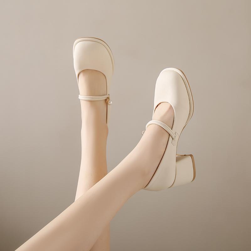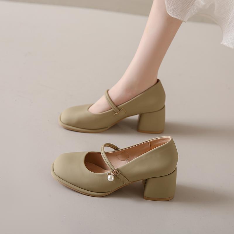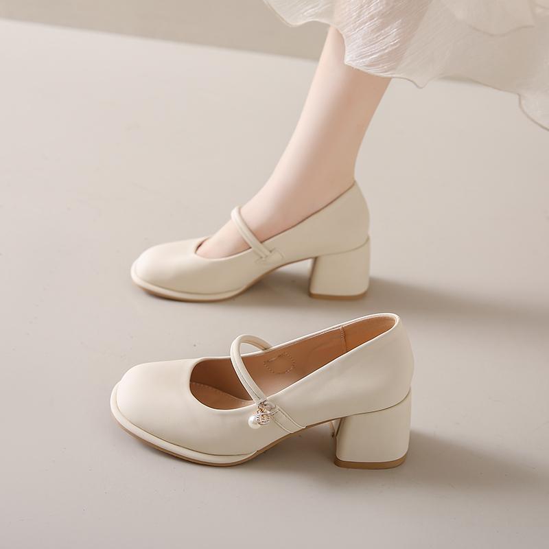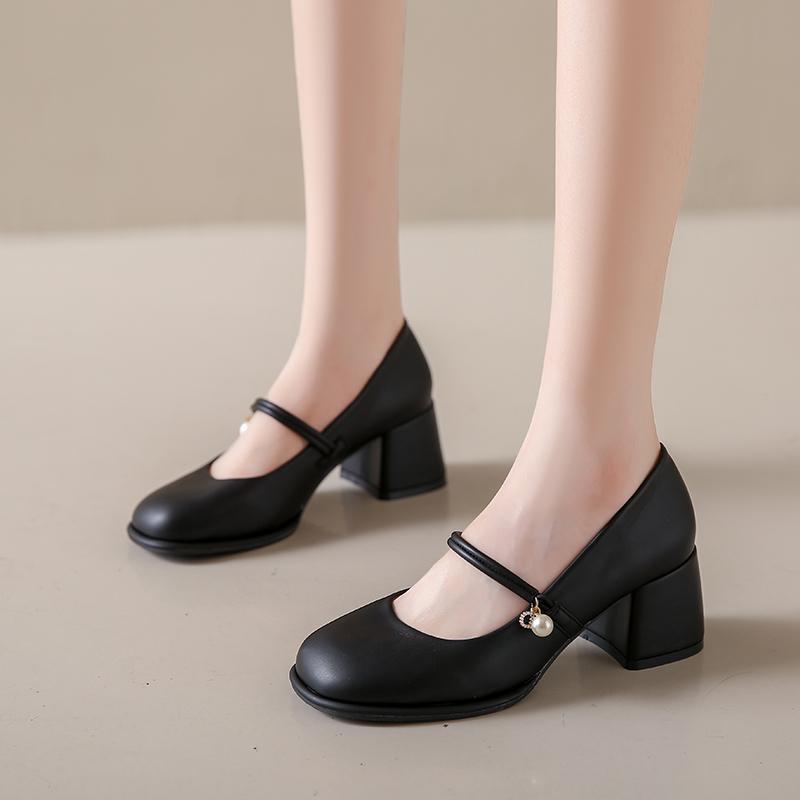 Мода 2024 года, весна и осень, новые модные туфли с круглым носком из кожи, водонепроницаемые, удобные, на высоком каблуке, с неглубоким носком